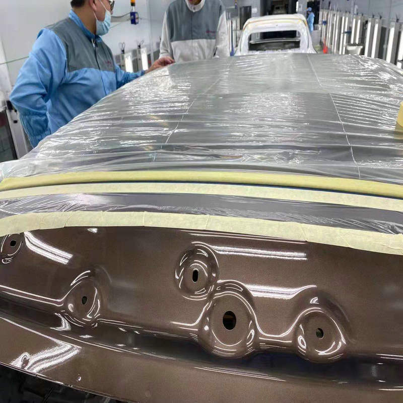 已通過大品牌車漆廠測試,噴漆烘烤140度、160度、180度、200度等時間持60分鐘后撕起膜面不粘鈑金、不產生鬼影、無化學析出。